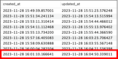 DB를 조회하게되면 create 및 update 시간이 한국기준으로 정상적으로 나오고 있는것을 확인 할 수 있습니다.